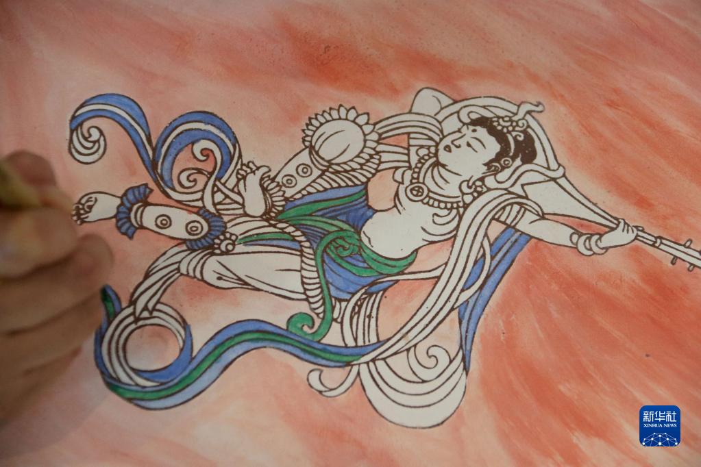 近年來(lái),甘肅省敦煌研究院依托敦煌石窟資源和學(xué)術(shù)資源,打造“莫高學(xué)堂”研學(xué)品牌,結合敦煌壁畫(huà)的結構、巖彩、圖案等內容和元素,研發(fā)了“莫高夢(mèng)·泥胚典藏”、“遇見(jiàn)敦煌·色彩”等10余個(gè)獨具特色的研學(xué)課程,傳承弘揚敦煌文化,推動(dòng)文旅產(chǎn)業(yè)融合發(fā)展,讓游客在旅游參觀(guān)同時(shí)進(jìn)一步體驗敦煌文化。莫高學(xué)堂自2019年創(chuàng )辦以來(lái),累計有5萬(wàn)余人次參加敦煌文化研學(xué)體驗。新華社發(fā)(張曉亮 攝)