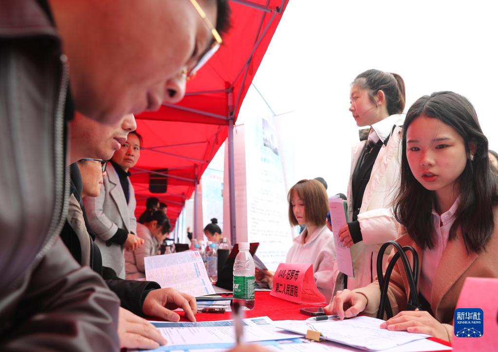 2月25日,在雙選會(huì )現場(chǎng),畢業(yè)生與用人單位洽談。