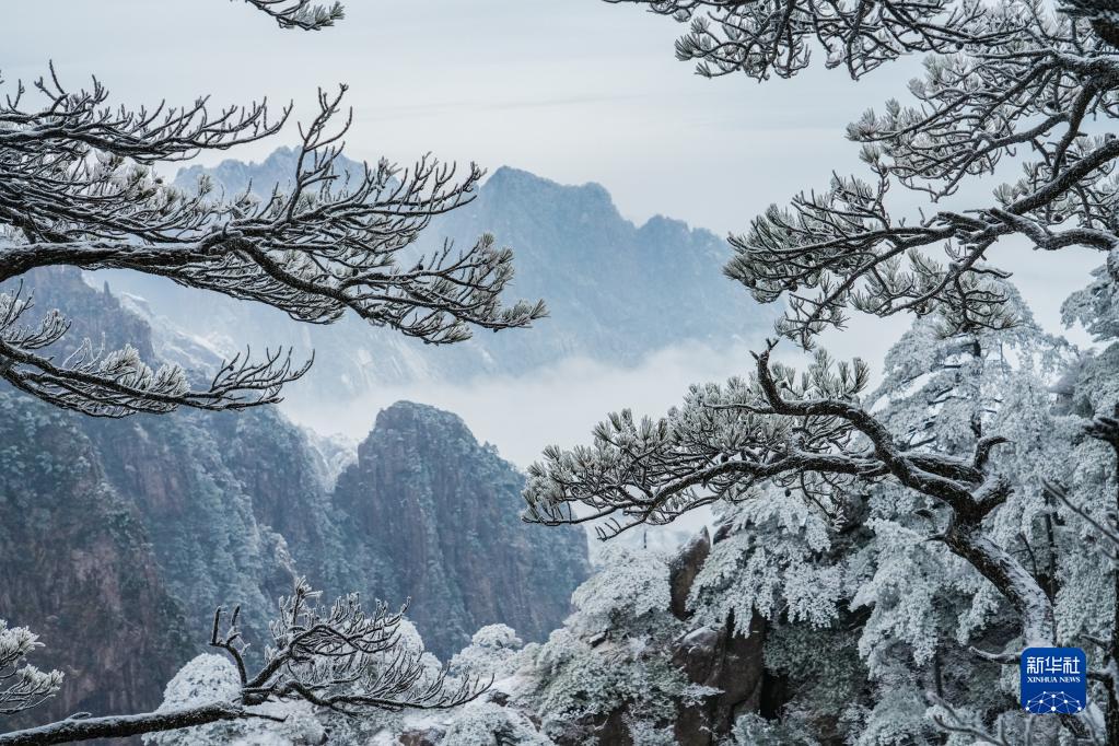 2月14日,受強冷空氣影響,安徽黃山風(fēng)景區氣溫驟降,出現霧凇美景。