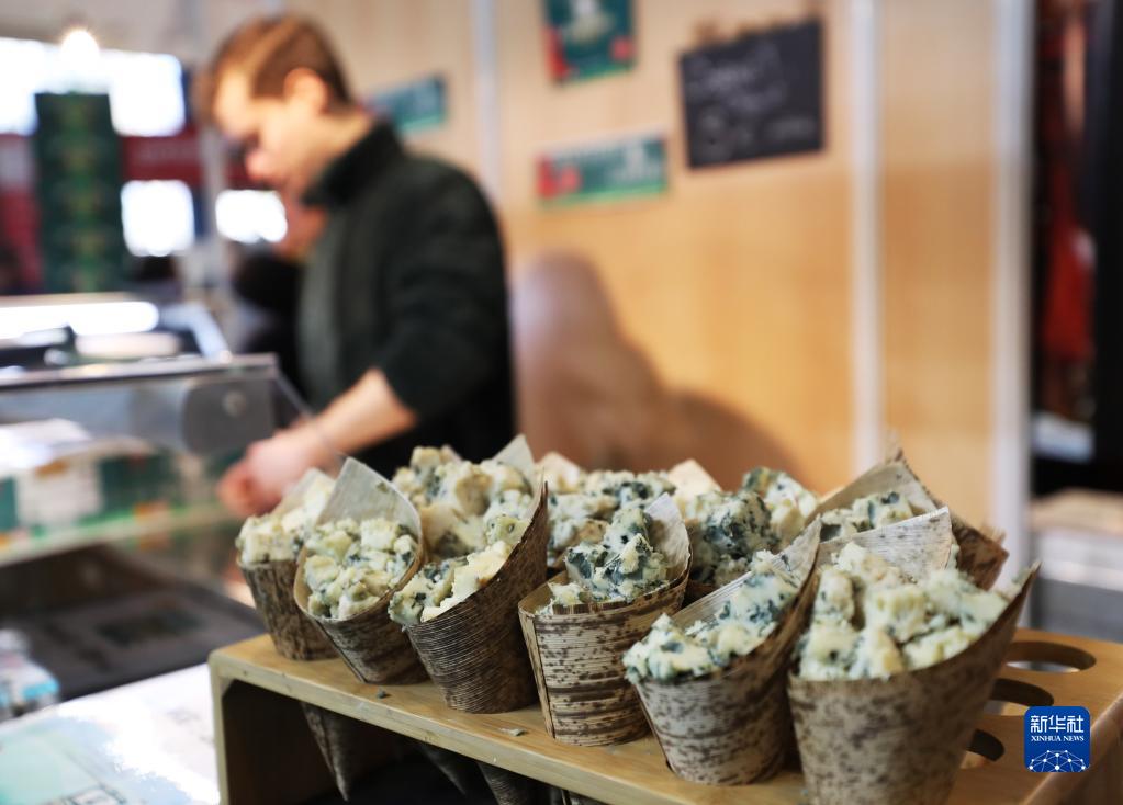 2月27日,在法國巴黎舉行的第59屆法國國際農業(yè)博覽會(huì )上,工作人員售賣(mài)奶酪。