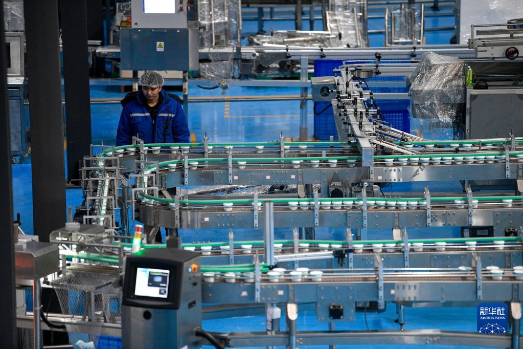 2月28日,在豐寧縣一家乳制品生產(chǎn)企業(yè)包裝車(chē)間,工人在生產(chǎn)線(xiàn)上忙碌。