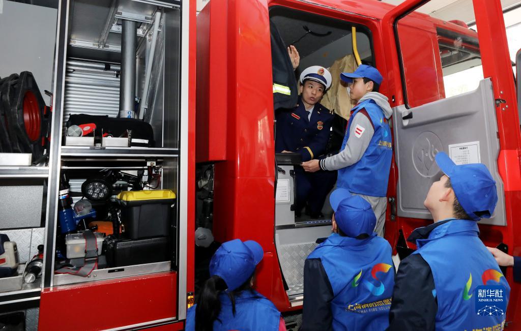 3月3日,“小小消防志愿者”服務(wù)隊隊員在消防員講解下了解消防車(chē)內的設備。