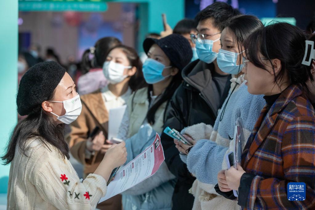 3月4日,在2023哈爾濱新區重點(diǎn)企業(yè)專(zhuān)場(chǎng)招聘會(huì )現場(chǎng),求職者在與用人單位工作人員交流。