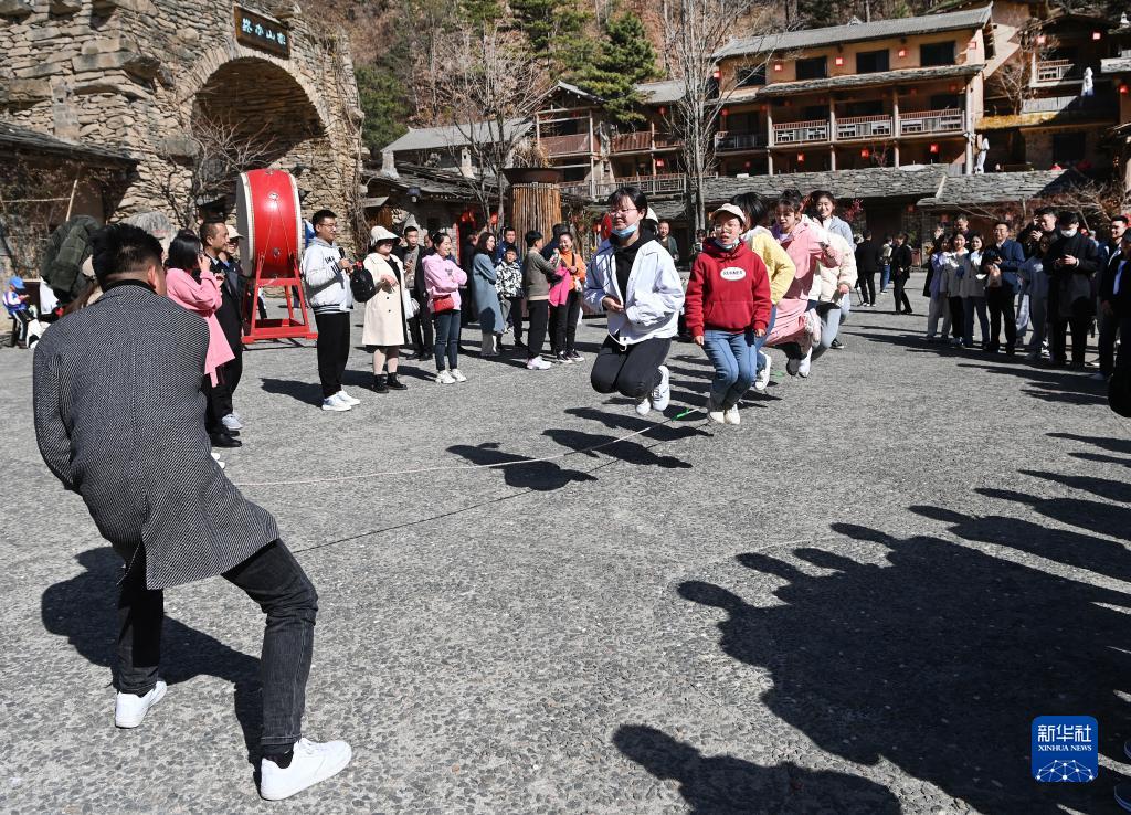 游客在柞水縣終南山寨景區娛樂(lè )(3月4日攝)。