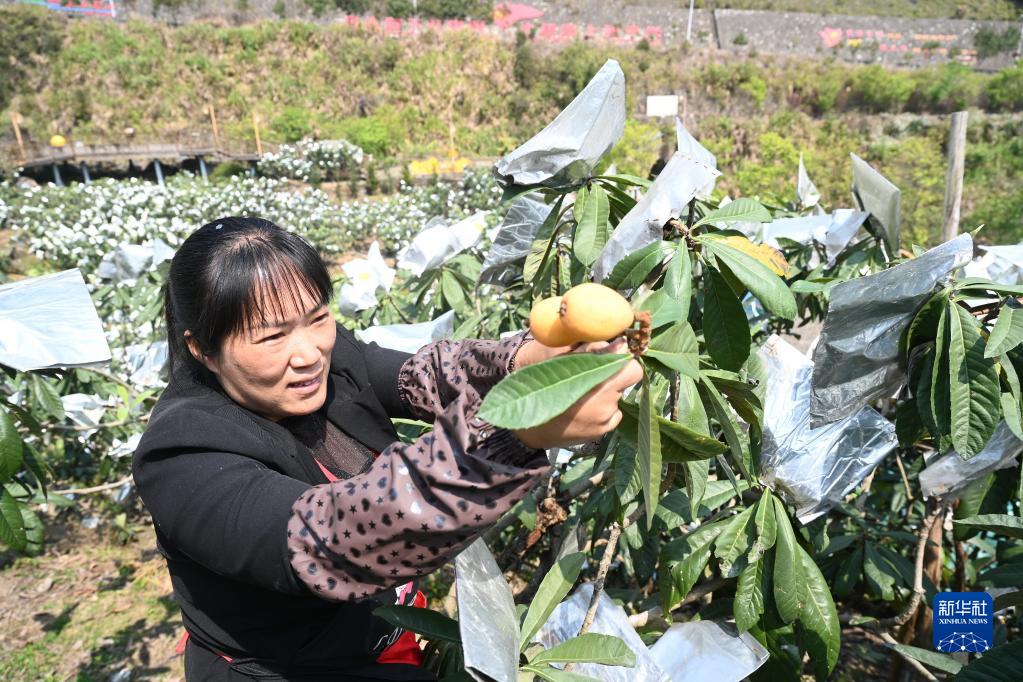 3月3日,吳素華在采摘枇杷。