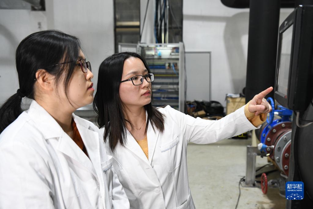 3月3日,中科院合肥物質(zhì)科學(xué)研究院強磁場(chǎng)科學(xué)中心高級工程師唐佳麗(右)與同事在工作中。