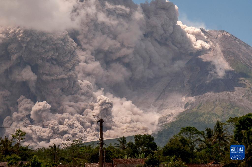 這是3月11日在印度尼西亞日惹拍攝的噴發(fā)的默拉皮火山。