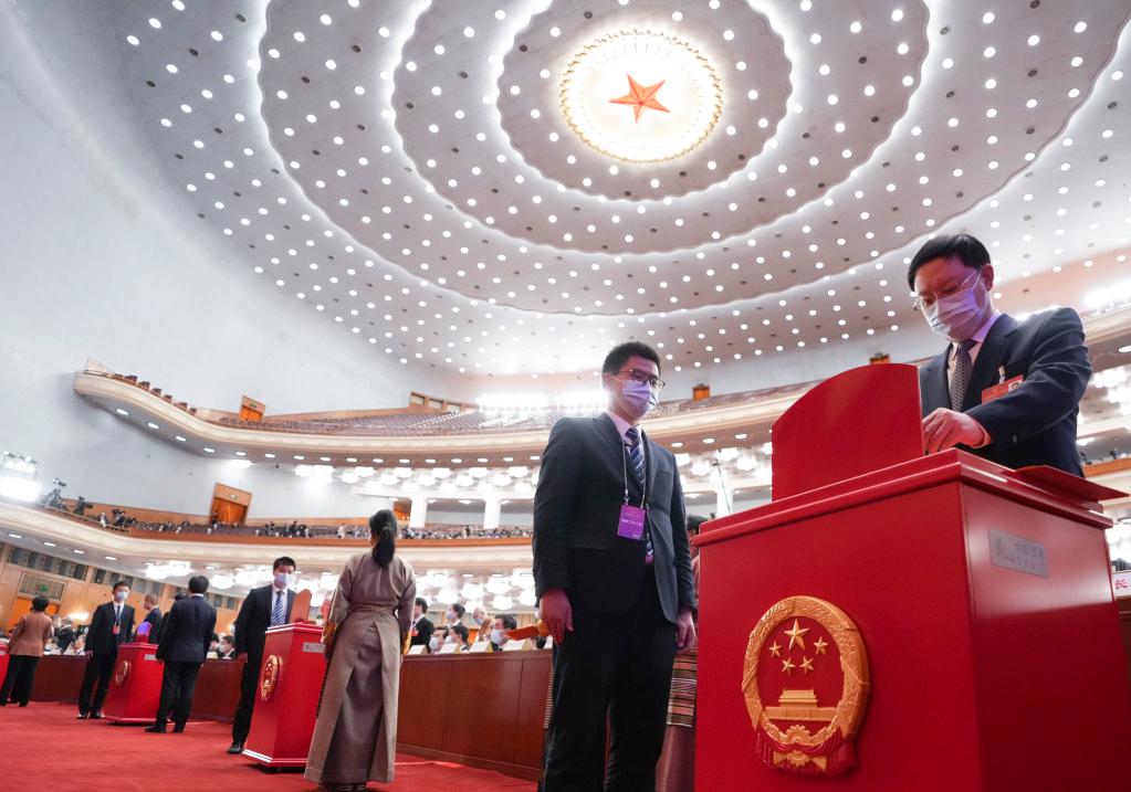 3月11日,十四屆全國人大一次會(huì )議在北京人民大會(huì )堂舉行第四次全體會(huì )議。這是代表在投票。