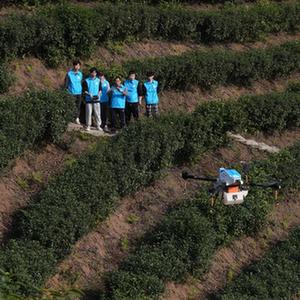 3月14日,在重慶市北碚區天府鎮代家村青峰茶場(chǎng),來(lái)自重慶海聯(lián)職業(yè)技術(shù)學(xué)院無(wú)人機專(zhuān)業(yè)的學(xué)生在練習植保無(wú)人機飛防作業(yè)。