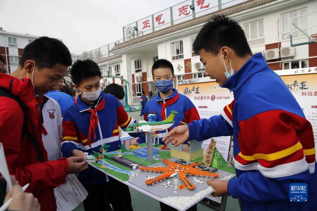當日,北京市第五中學(xué)分校第六屆“國潮來(lái)襲——北京中軸線(xiàn)”主題科技嘉年華跨學(xué)科綜合實(shí)踐作品設計展示活動(dòng)在校園舉行。學(xué)校組織學(xué)生通過(guò)制作縮微景觀(guān)沙盤(pán)、文創(chuàng )作品設計、拍攝微電影等形式,結合語(yǔ)文、歷史、地理、藝術(shù)、信息等學(xué)科研討挖掘周邊資源,跨學(xué)科、多角度地詮釋“北京中軸線(xiàn)”的歷史文化和建設成就。