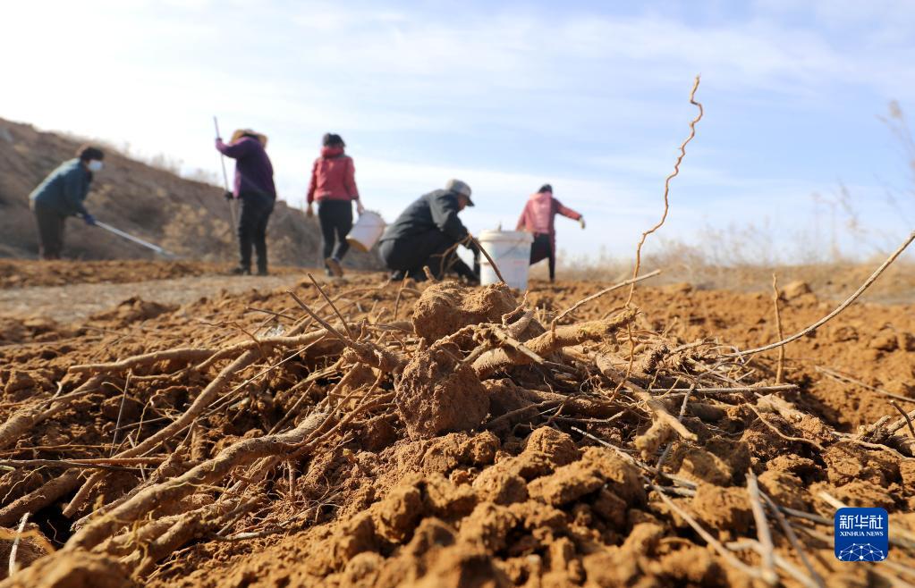 3月15日,在河北省石家莊市行唐縣上閆莊鄉中藥材種植基地,農戶(hù)在采收黃芩。