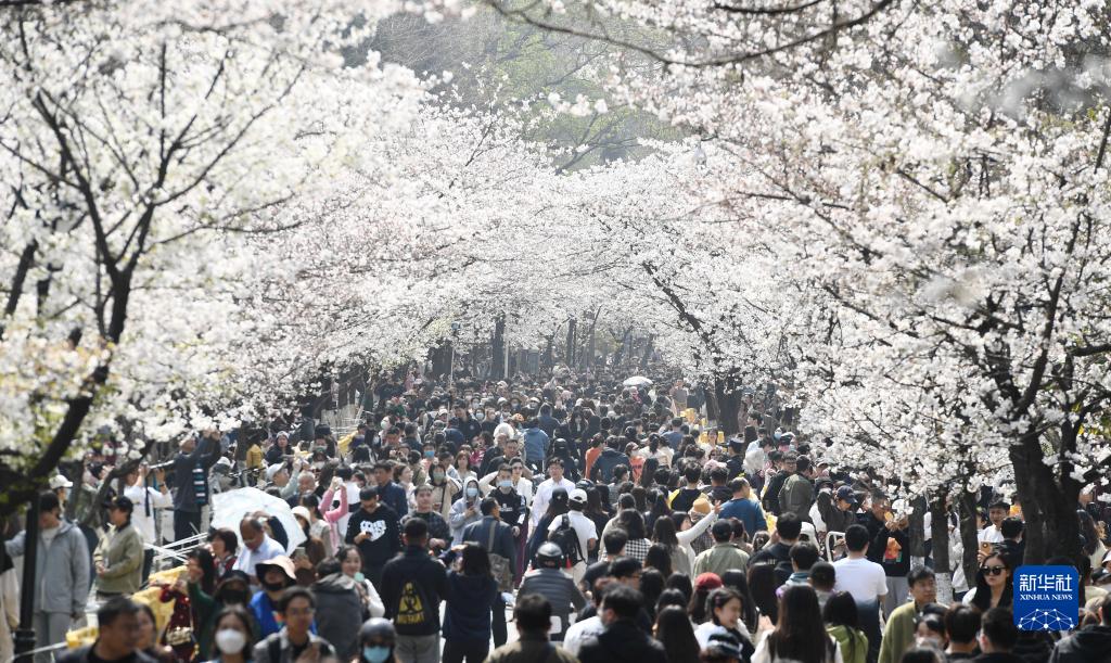 3月15日,游客在江蘇南京雞鳴寺路上觀(guān)賞櫻花。