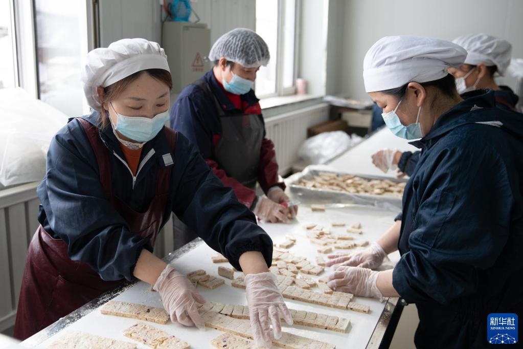 3月15日,在大興安嶺益康野生食品加工有限公司生產(chǎn)車(chē)間內,工人在加工野生堅果制品。