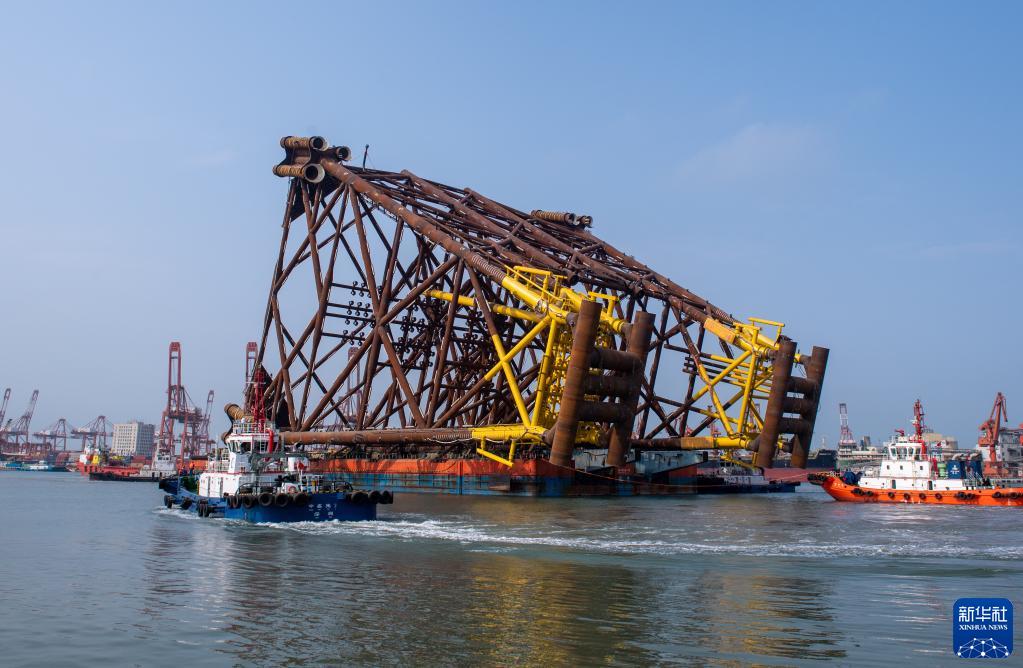 3月17日,在深圳赤灣海洋工程碼頭,“海洋石油228”運輸駁船搭載著(zhù)恩平20-4平臺導管架啟航。