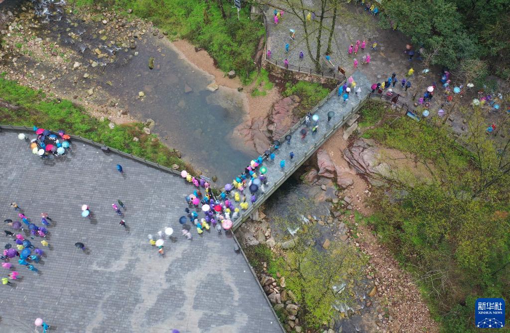 3月18日,游人在張家界國家森林公園金鞭溪游玩(無(wú)人機照片)。