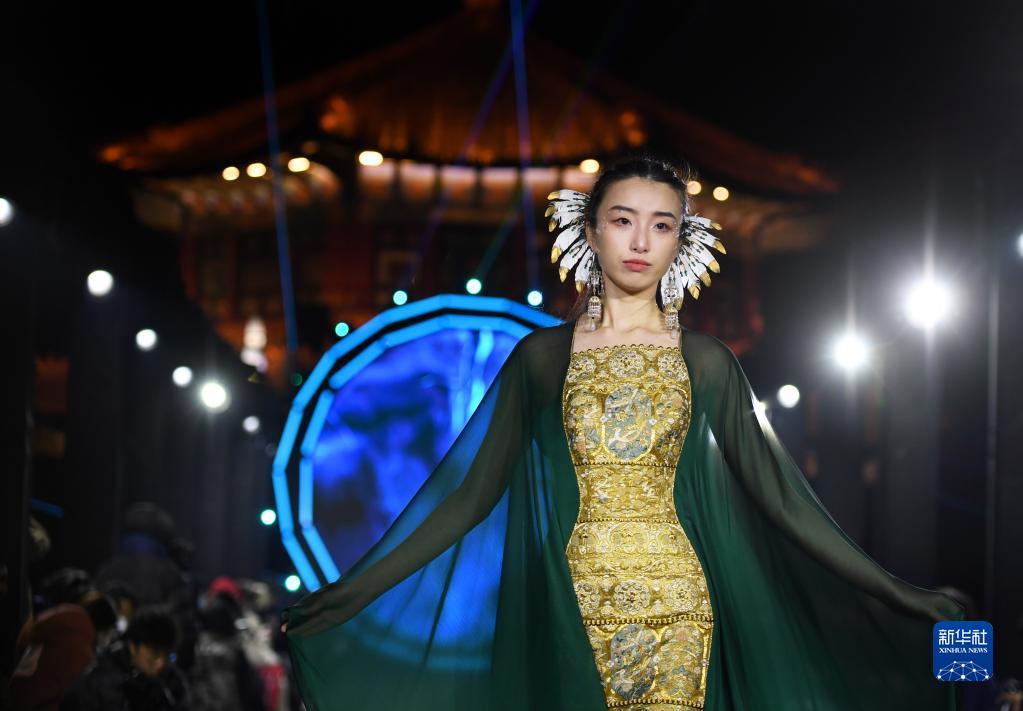 當晚,山東省青島市2023上街里·逛春天旅游藝術(shù)季華服時(shí)裝秀在棧橋景區回瀾閣前舉行。