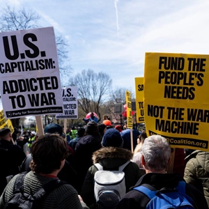 當日,數百名反戰人士在美國首都華盛頓市白宮北側拉斐特廣場(chǎng)舉行集會(huì ),敦促美國政府反思伊拉克戰爭,呼吁美國關(guān)?!皯馉帣C器”。