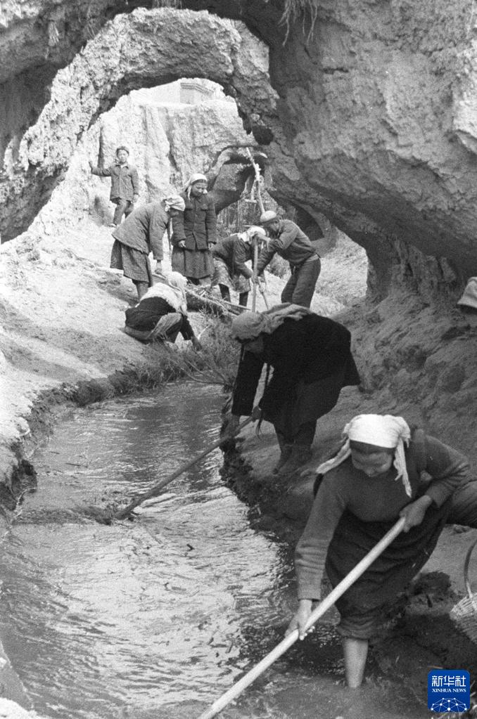 1963年,新疆吐魯番群眾在整修坎兒井渠道。
