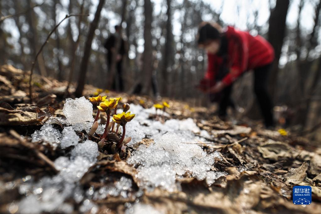 3月20日,市民在長(cháng)春凈月潭國家森林公園內拍攝冰凌花。