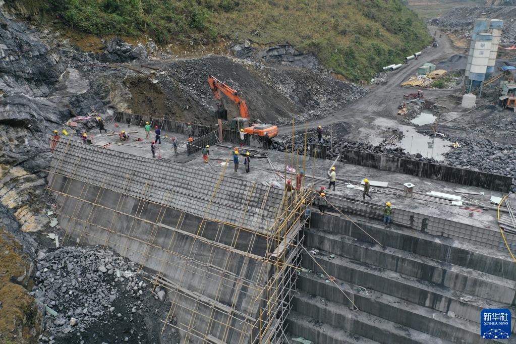 這是廣西大化瑤族自治縣七百弄鄉王烈水庫建設施工現場(chǎng)(2021年3月15日攝,無(wú)人機照片)。