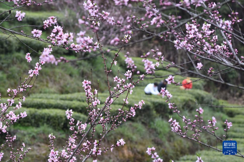 3月21日,茶農在貴州省銅仁市江口縣壩盤(pán)鎮掛扣村茶園采摘春茶。