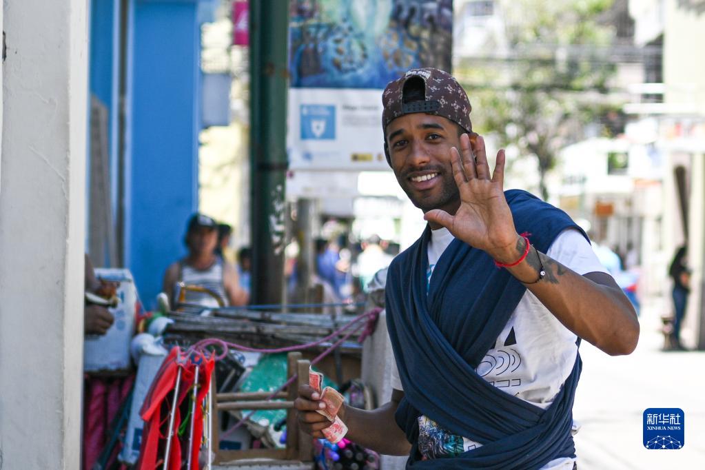3月26日,一名男子在洪都拉斯首都特古西加爾巴一處街道上面對鏡頭揮手致意。