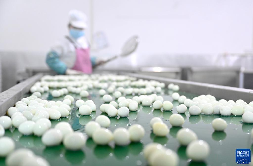 3月27日,在柳州市柳城縣社沖鄉柳州螺螄粉原材料基地里,工人在鵪鶉蛋加工廠(chǎng)車(chē)間里忙碌。