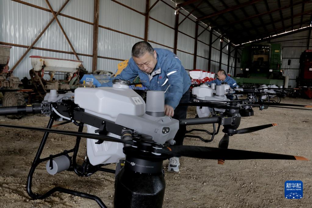 3月27日,在海林市長(cháng)汀鎮卜家村,海林市農機總站的技術(shù)人員在維護保養農業(yè)無(wú)人機。