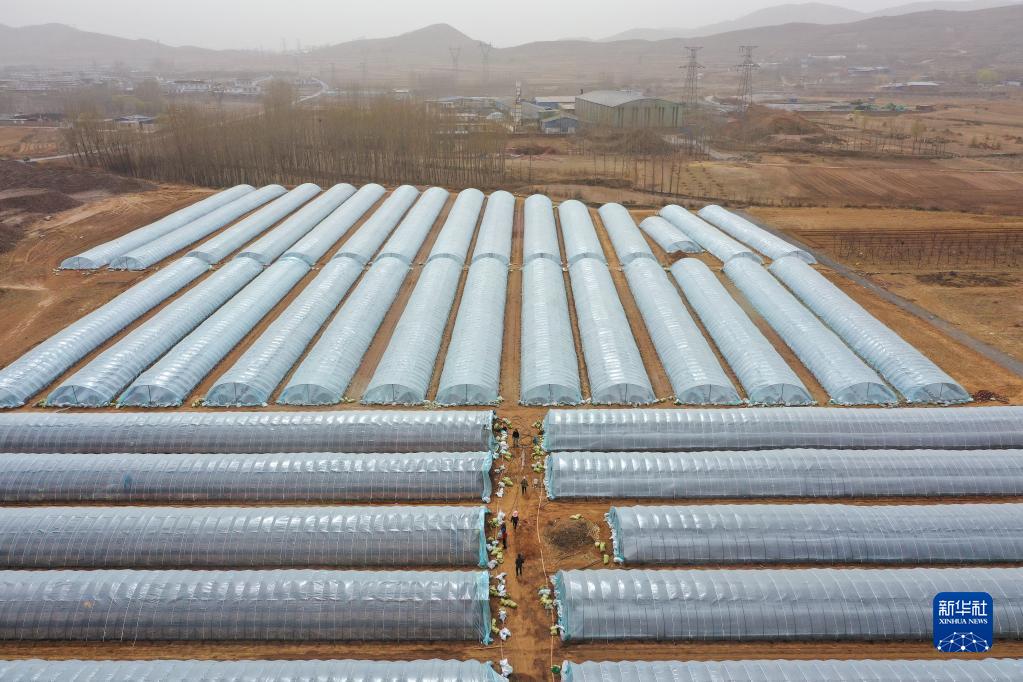 河北省灤州市九百戶(hù)鎮一處紅薯育苗基地(3月28日攝,無(wú)人機照片)。