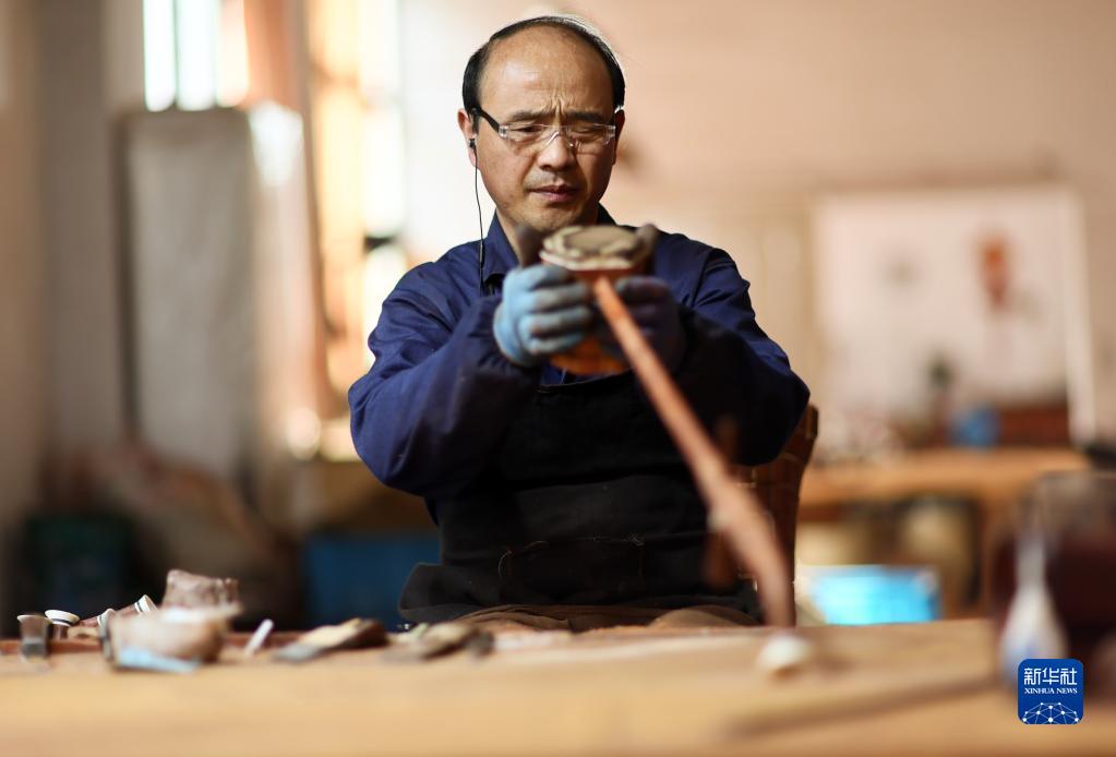 3月28日,在江蘇無(wú)錫梅村街道二胡產(chǎn)業(yè)園,工人在組裝二胡。