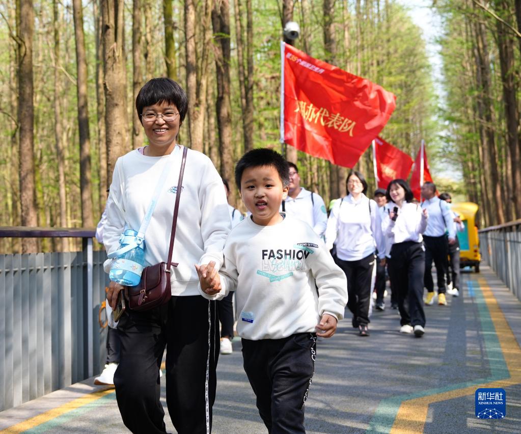 4月8日,市民在青山湖綠道參加第35個(gè)愛(ài)國衛生月毅行活動(dòng)。