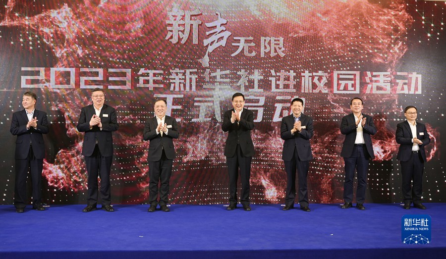 4月11日,嘉賓共同啟動(dòng)“新聲無(wú)限——2023年新華社進(jìn)校園活動(dòng)”。當日,“新聲無(wú)限——2023年新華社進(jìn)校園活動(dòng)”啟動(dòng)儀式在北京舉行。新華社記者 金良快 攝