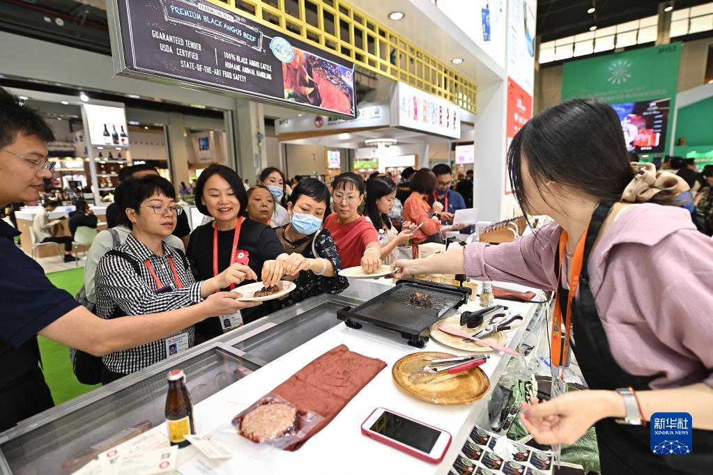 在??谂e行的第三屆中國國際消費品博覽會(huì )上,來(lái)自全球的優(yōu)質(zhì)農產(chǎn)品和特色美食云集。觀(guān)眾在消博會(huì )上品嘗美食,享受舌尖上的盛宴。