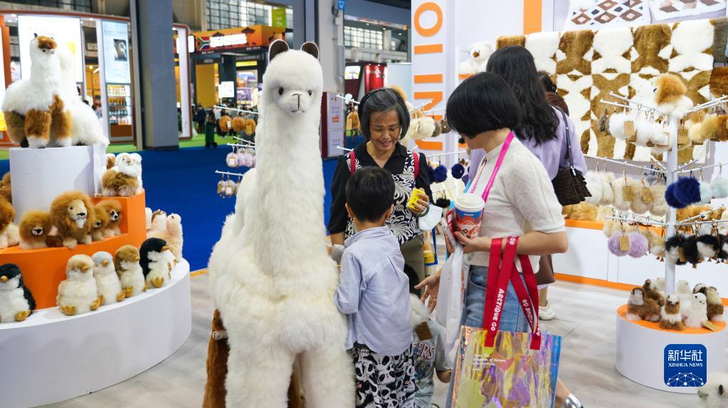4月12日拍攝的一家澳大利亞羊駝毛制品品牌的展臺。