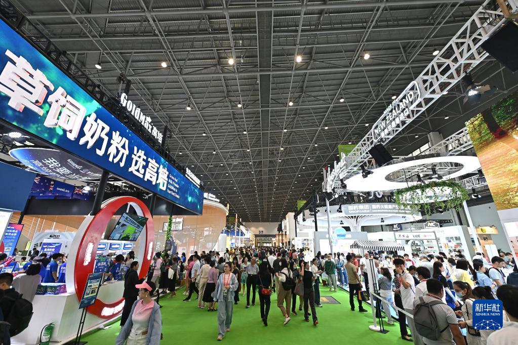這是消博會(huì )上新西蘭兩大奶粉品牌高培(左)和荷仕蘭的展臺(4月12日攝)。