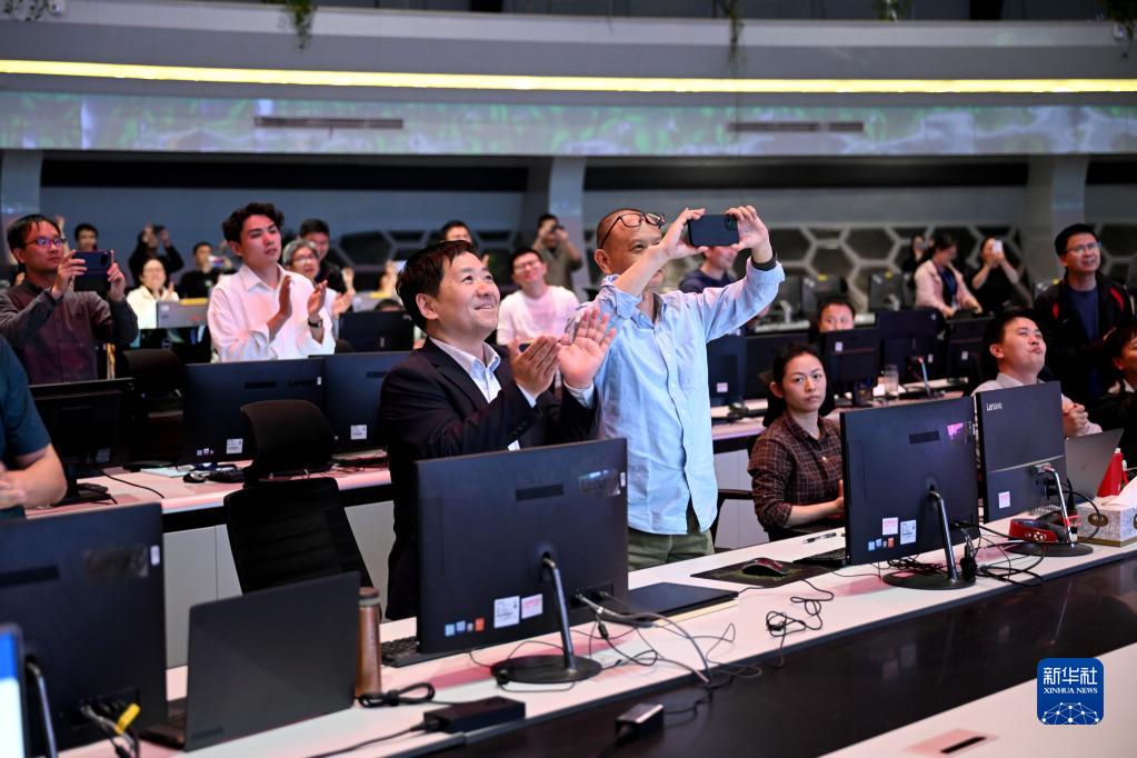 4月12日,在全超導托卡馬克核聚變實(shí)驗裝置(EAST)控制大廳,科研人員在實(shí)驗成功后慶祝。
