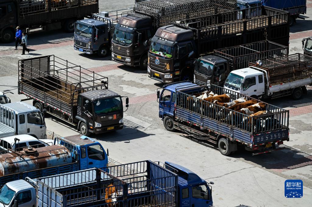 4月12日拍攝的繁忙的成峰牲畜交易市場(chǎng)。