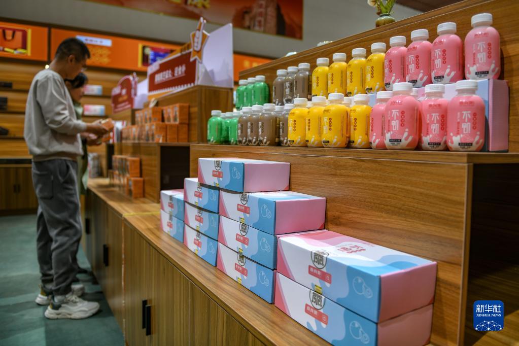 4月12日,在泰安市岱岳區的一家黃精加工企業(yè)內,訪(fǎng)客在參觀(guān)種類(lèi)豐富的黃精產(chǎn)品。
