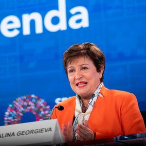 4月13日,在美國華盛頓,國際貨幣基金組織(IMF)總裁格奧爾基耶娃出席記者會(huì )。