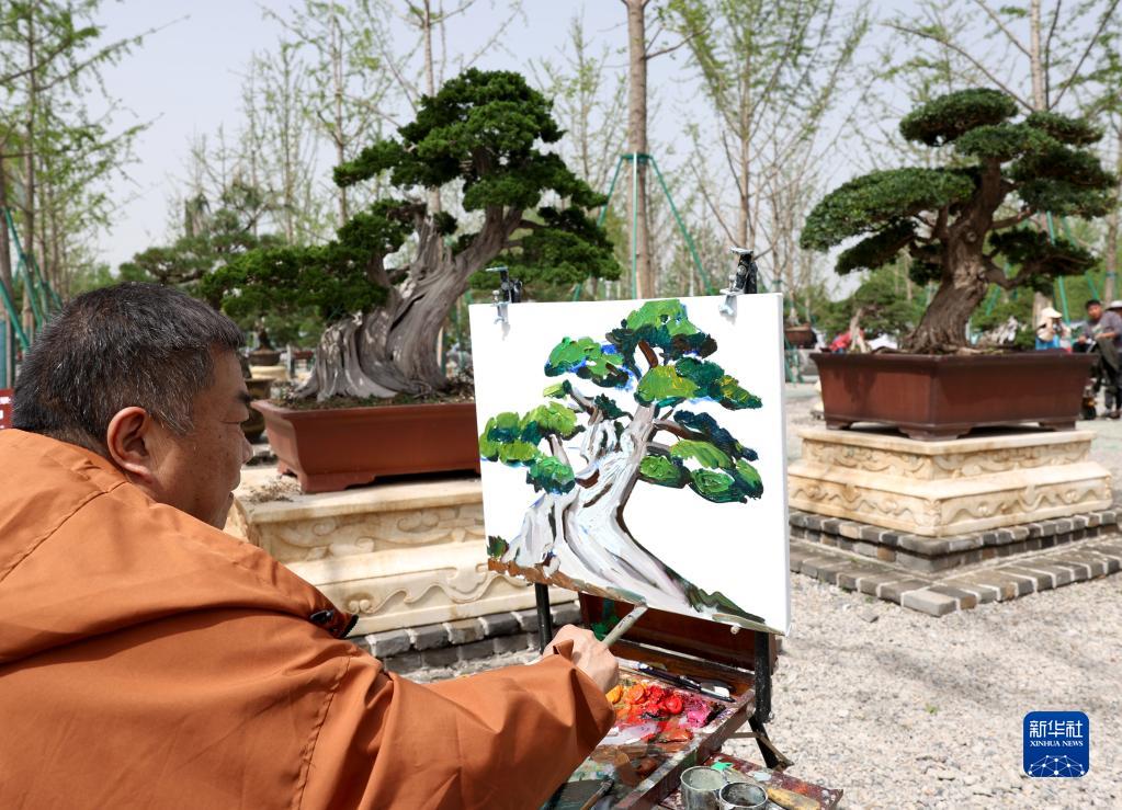 4月15日,畫(huà)家在盆景展展區寫(xiě)生創(chuàng )作。
