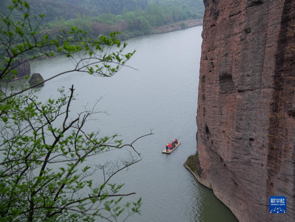 4月13日,游客乘竹筏在江西省鷹潭市龍虎山風(fēng)景區游覽。