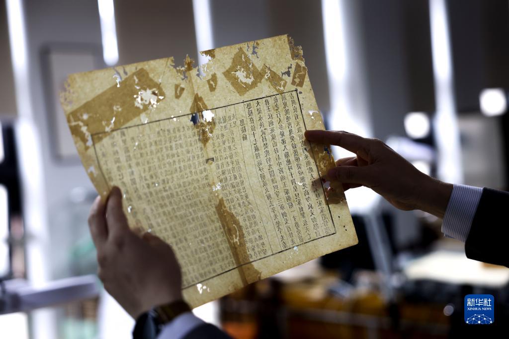 4月14日,在廣西壯族自治區圖書(shū)館古籍保護中心的工作室內,黃玉杏在修復工作開(kāi)始前檢查古籍的破損狀況。