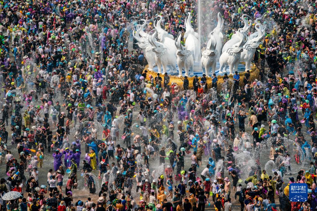 4月15日,人們在云南省西雙版納傣族自治州景洪市潑水廣場(chǎng)潑水狂歡。