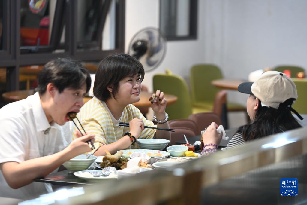 4月14日,游客在三明市沙縣區的“李記”沙縣小吃店品嘗沙縣小吃。