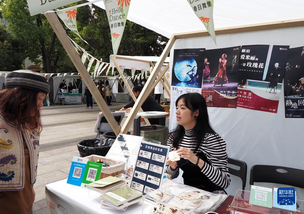 4月15日,市民在歡樂(lè )市集瀏覽文創(chuàng )產(chǎn)品。