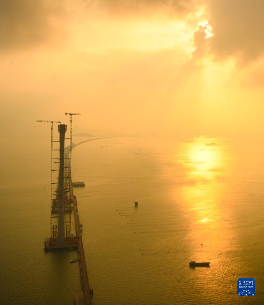 4月18日,由保利長(cháng)大承建的黃茅海大橋中塔順利封頂。至此,黃茅??绾Mǖ赖母邫诟鄞髽蚝忘S茅海大橋共5座主塔全部封頂。