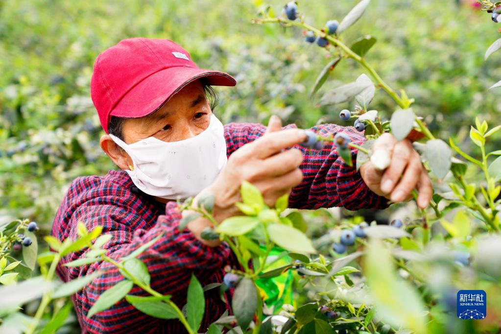 4月23日,村民在惠民縣淄角鎮鄉村振興產(chǎn)業(yè)示范基地采摘藍莓。
