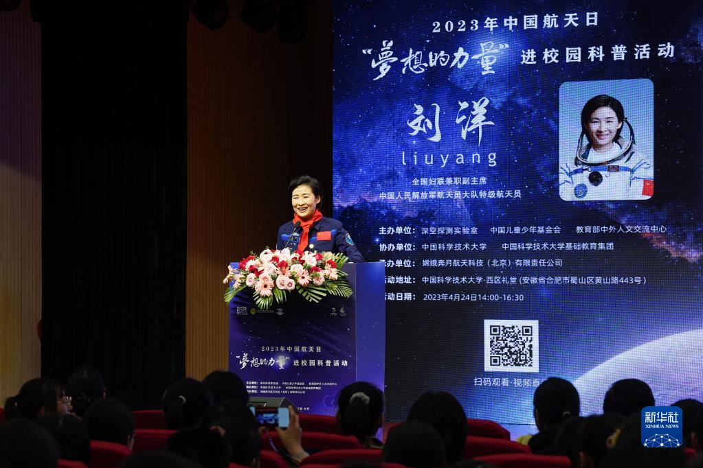 當日,2023年中國航天日“夢(mèng)想的力量”進(jìn)校園科普活動(dòng)在安徽省合肥市中國科學(xué)技術(shù)大學(xué)舉行?;顒?dòng)邀請航天員劉洋向學(xué)生介紹中國載人航天的輝煌成就,分享個(gè)人飛天夢(mèng)想與成長(cháng)故事,為學(xué)生播下夢(mèng)想的種子。