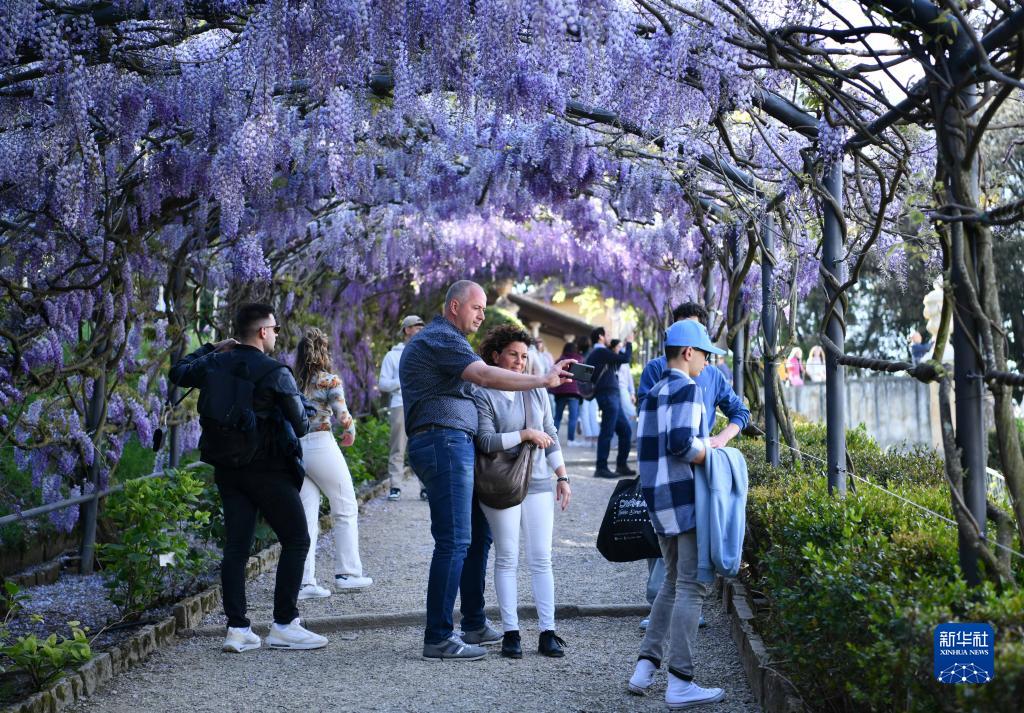 意大利佛羅倫薩巴爾迪尼花園近日紫藤花盛放,吸引眾多游客前來(lái)觀(guān)賞。