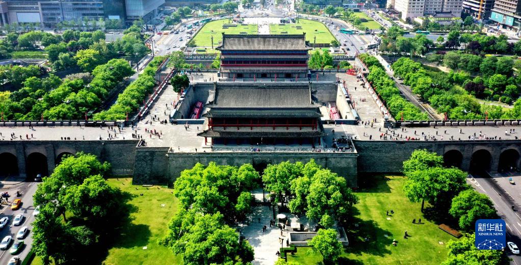 西安明城墻永寧門(mén)(4月25日攝,無(wú)人機照片)。